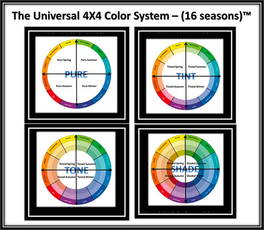 Sistem Analisis Warna 4X4 melayani semua jenis kulit. Fondasi dari empat musim adalah setiap musim memiliki empat kategori terpisah.